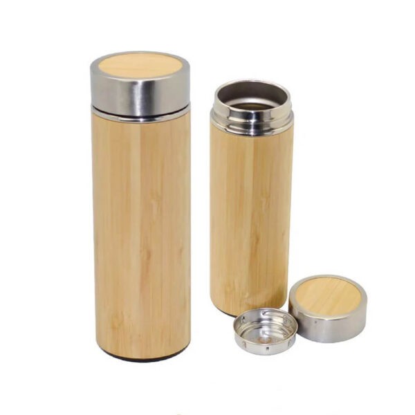 กระบอกน้ำสแตนเลสเนื้อไม้ไผ่ธรรมชาติ 500ML สีไม้
